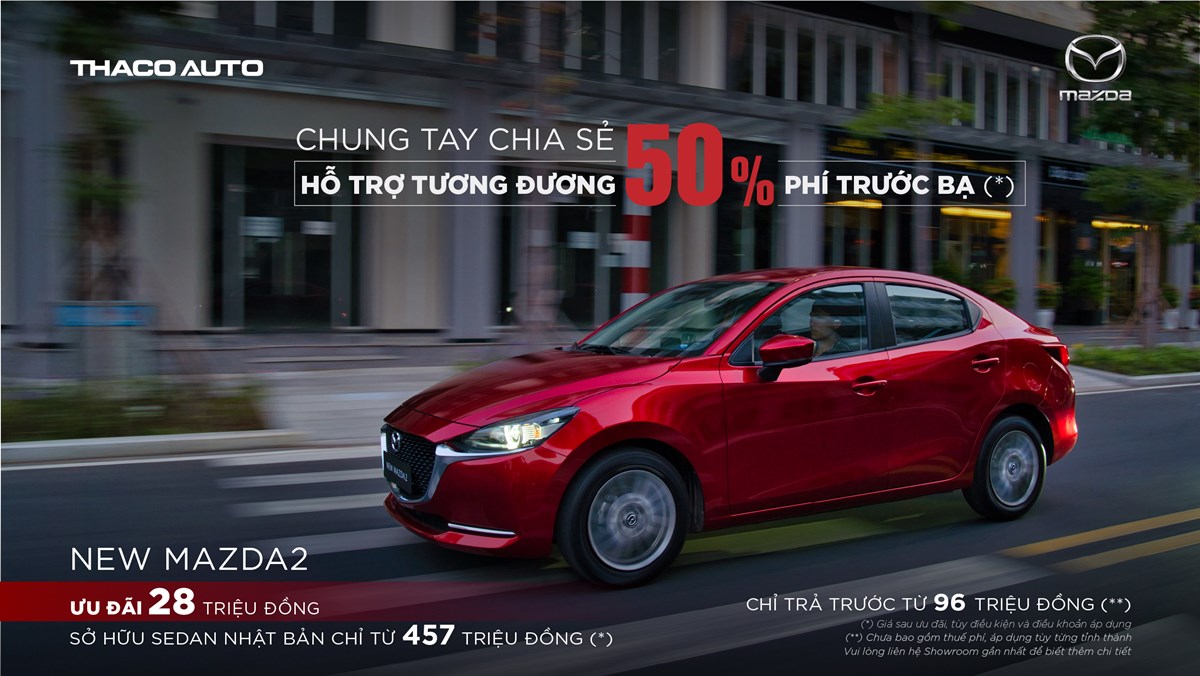 Bên cạnh các mẫu SUV, khách hàng mua hai mẫu sedan New Mazda2 và All-New Mazda3 trong tháng này cũng được hỗ trợ tương đương với 50% lệ phí trước bạ. Cụ thể, New Mazda2 nhận gói hỗ trợ đến 28 triệu đồng, đưa giá bán khởi điểm của mẫu xe này về mức 457 triệu đồng, cùng ưu đãi trả trước chỉ từ 96 triệu đồng. Như vậy, việc sở hữu mẫu xe cỡ B nhiều công nghệ và thiết kế hợp xu hướng trở nên dễ dàng hơn với khách hàng Việt.