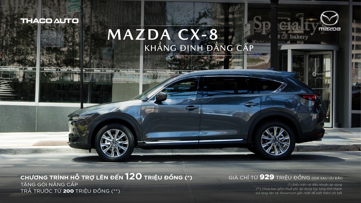 Mức hỗ trợ cao nhất của Mazda sẽ nằm ở các mẫu SUV cao cấp như Mazda CX-8, Mazda CX-5. Theo đó, mẫu xe 7 chỗ thực thụ đến từ thương hiệu Nhật Bản, CX-8 được hỗ trợ cao nhất đến 120 triệu đồng cho bản Deluxe, bao gồm ưu đãi trực tiếp giá bán đến 70 triệu đồng, cùng gói phụ kiện nâng cấp trị giá 50 triệu đồng. Mức giá CX8- Deluxe sau khi giảm chỉ còn 929 triệu đồng, cùng ưu đãi vay mua xe hấp dẫn, khách hàng chỉ cần trả trước từ 200 triệu đồng.