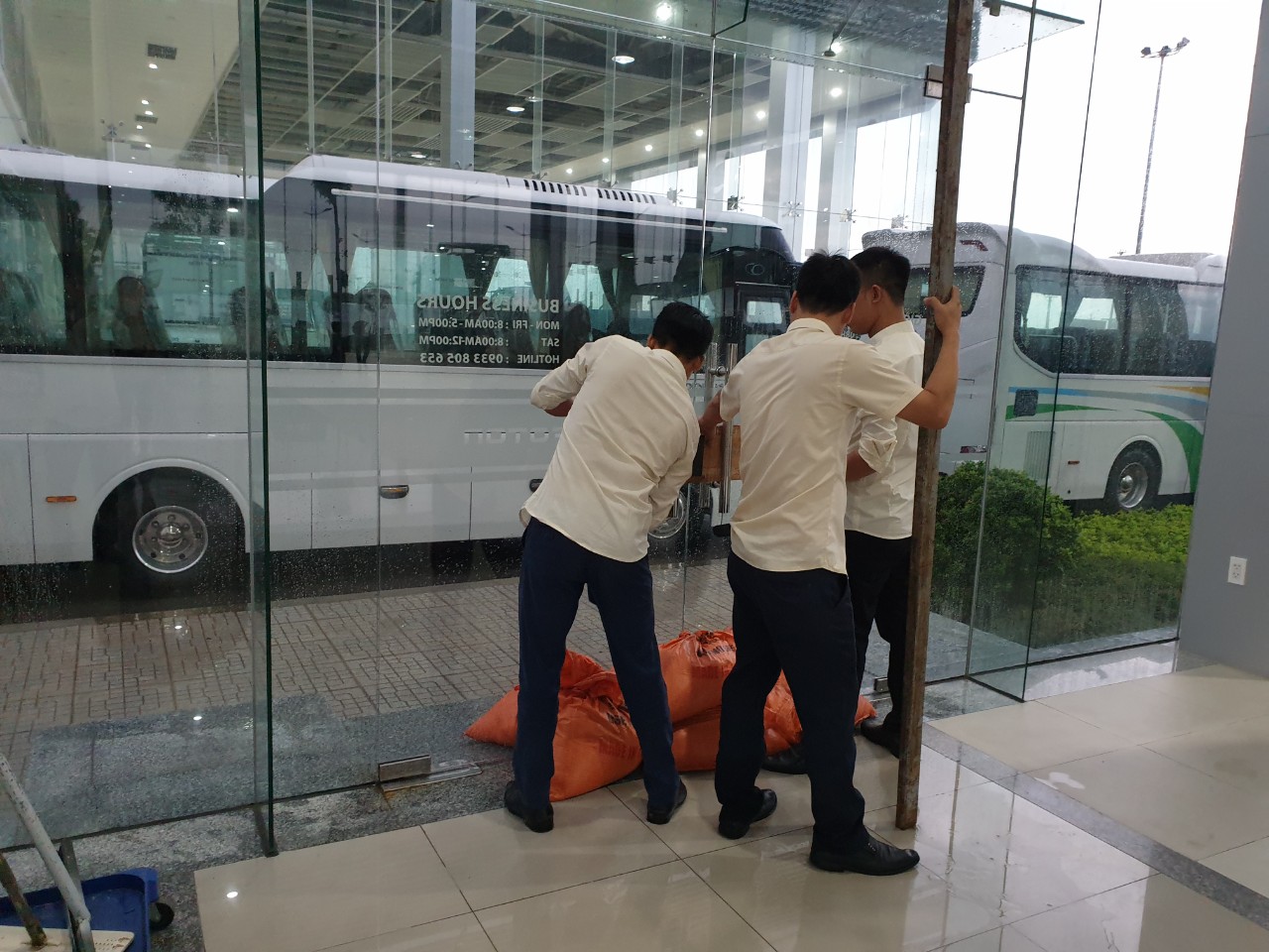 Trong khi đó, Bộ phận KD xe, DVPT và các nghiệp vụ phối hợp thực hiện các biện pháp gia cố showroom, xưởng dịch vụ bằng các dụng cụ chuyên dùng như thanh giằng chống cho cửa kính, vách kính; Gia cố cửa kính thủy lực tại các Showroom. Các bộ phận được tổ chức, bố trí di dời, gia cố các tài sản để giảm thiểu rủi ro. Song song đó, Tải, bus Thanh Hóa đã bố trí nhân sự trực chống bão tại Showroom 24/24, bố trí nhân sự thường xuyên cập nhật thông tin diễn biến bão để có giải pháp phù hợp. Đặc biệt, nhân sự tuyệt đối không ra ngoài khi bão đổ bộ.