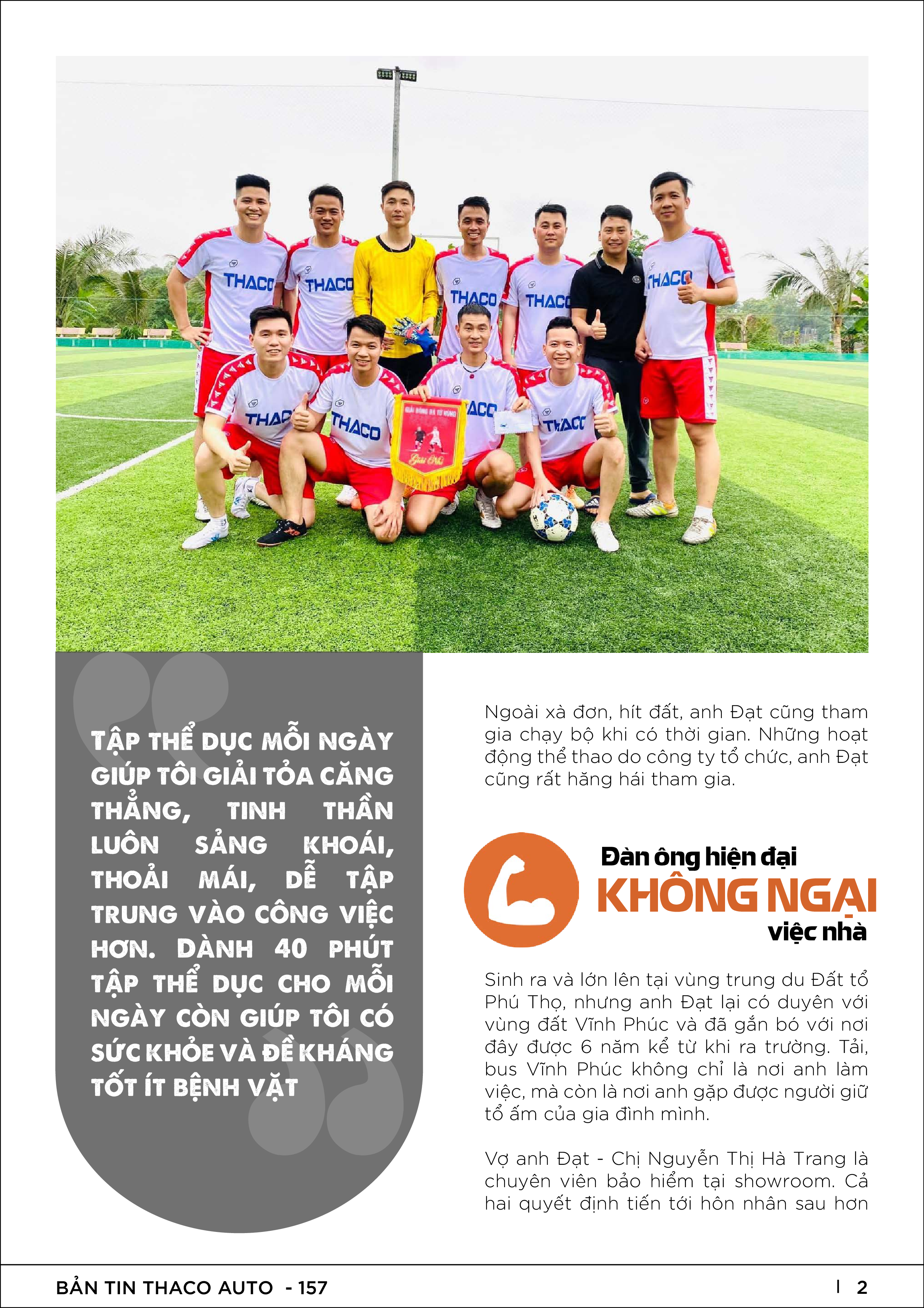 Kính gửi Ban Lãnh đạo, CBNV THACO AUTO ấn phẩm bản tin nội bộ số 157 với các nội dung nổi bật: Đàn ông hiện đại, không ngại việc nhà; Tại sao nên tiêm vaccine phòng Covid-19?